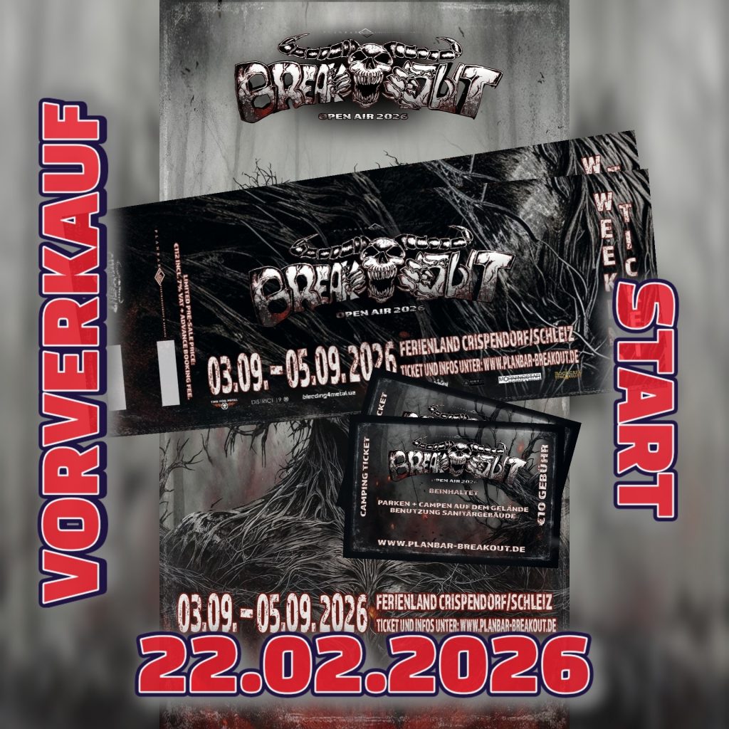 Soooooo, liebe Metalgemeinde, es ist soweit. Am Sonntag, den 22.02.2026, startet der Kartenvorverkauf für das Breakout OpenAir 2026. Wer zuerst headbangt, spart, denn es gibt nur 200 limitierte Early-Bird-Tickets für 100 € (zzgl. Gebühr). Danach erfolgt der reguläre Ticketpreis von 112 € (zzgl. Gebühr). Sonntag – Handy, Tablet, PC, was auch immer in die Hand […]